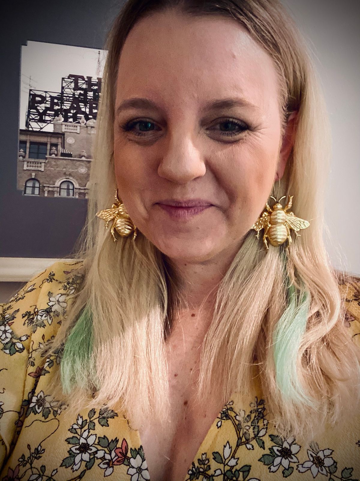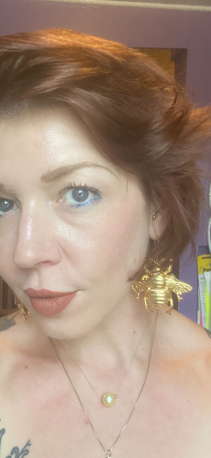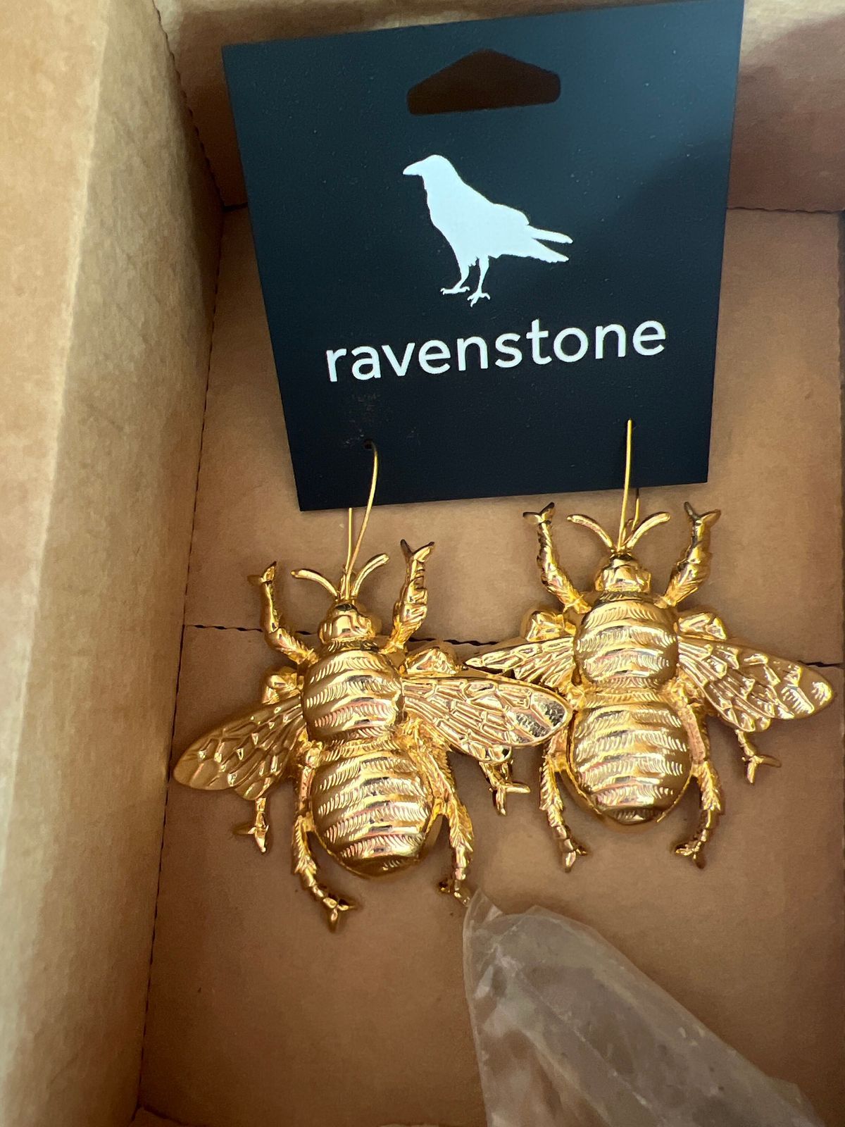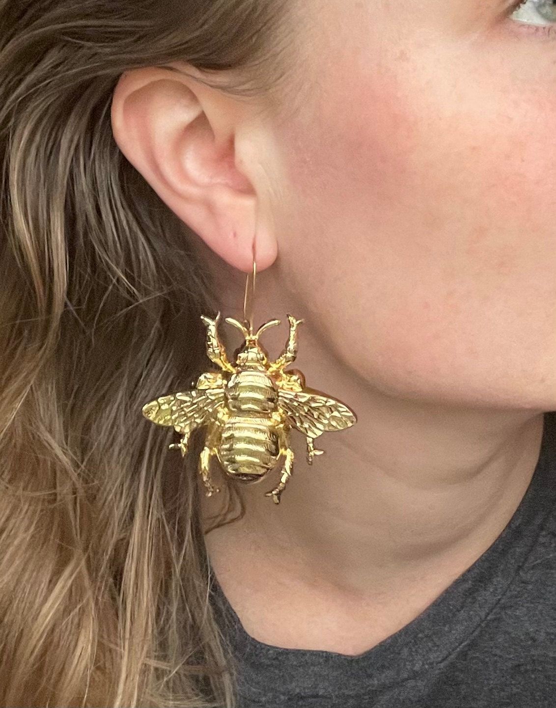 Extra large, lightweight (hollow backed) metal bee earrings.
