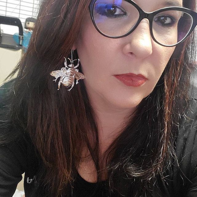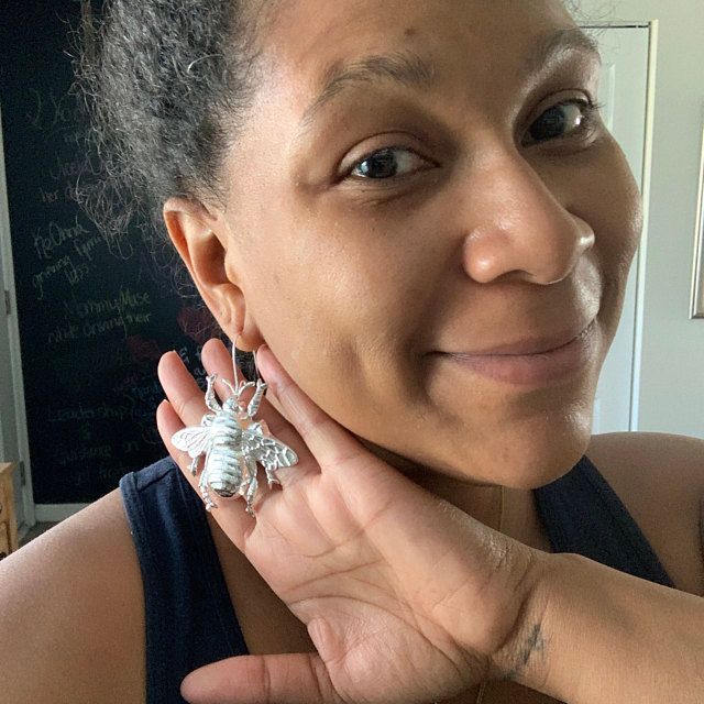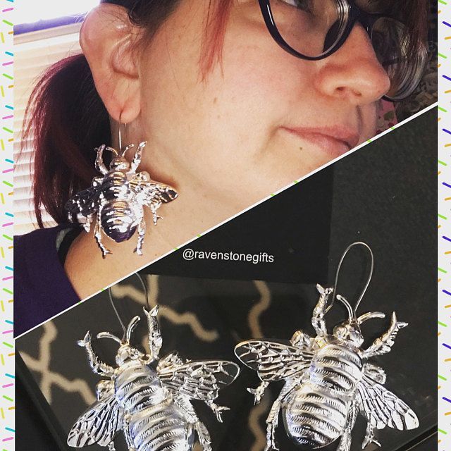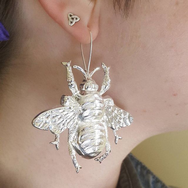 Extra large, lightweight (hollow backed) metal bee earrings.