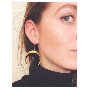 Recycled brass finished with shiny, genuine gold and suspended on secure "kidney" style ear wires.