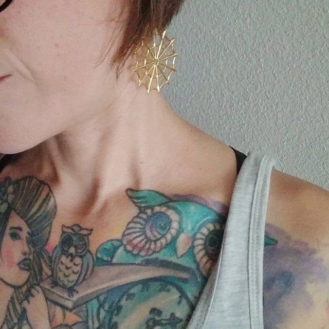Large, lightweight (hollow backed) metal spiderweb earrings.