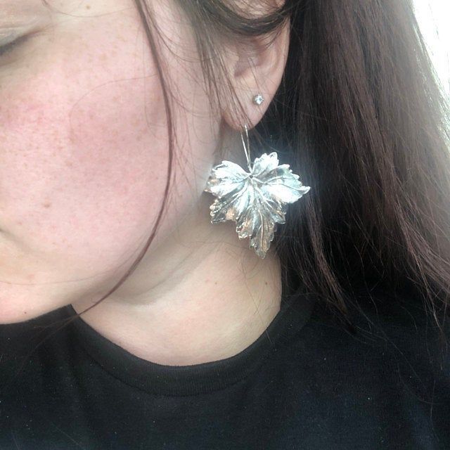Large metal leaf earrings.