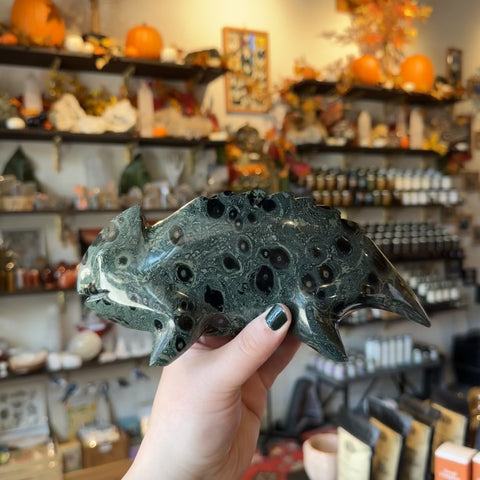 Kambaba Jasper, also known as the “Swamp Witch Stone”, is a stone of spiritual and emotional confidence. Its nurturing and compassionate properties are believed to improve healthy emotional relationships and manifest feelings of love and tranquility.