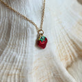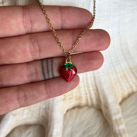 Beautiful, simple enameled Strawberry charm on a 16" chain with a 2" extender.