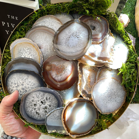 Beautiful Agate slices. You will receive one similar to the one(s) shown. These are all very different from one another, but they are all beautiful.