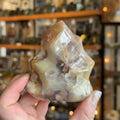 Flower Agate has Chalcedony inclusions that resemble blooming flowers in a variety of colors from teal to pink. It is said to remove our fears and help us reach our highest potential