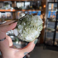 This stunning combination of Epidote and Quartz comes from Turkey, and is a metaphysical powerhouse. Epidote is a stone of the heart; believed to encourage a sense of open-heartedness to allow for deep connection, forgiveness, or overcoming hurt. Paired with this beautiful clear quartz, these have an amazing energy. They have a strong motivational energy to them - not like a Fire Quartz that gives us that fiery boost in productivity - but a heart-centered, inspired motivation to move forward in the direction of joy, optimism, and pure love.