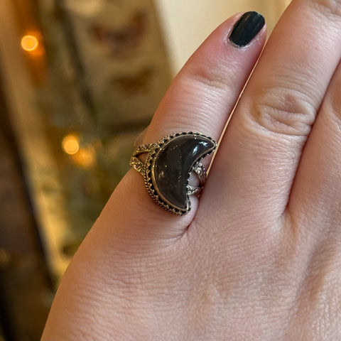 Genuine Black Moonstone and Sterling Silver ring, size 5.