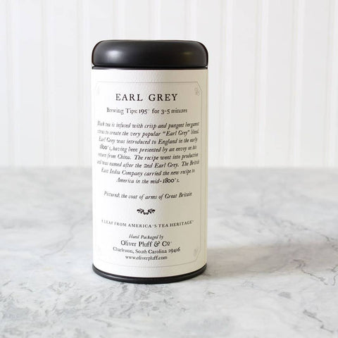 Black Tea blend with a distinctive flavor and aroma derived from the addition of oil extracted from the rind of the bergamot orange, a fragrant citrus fruit. Earl Grey was introduced in England in the early 1800's, having been presented by an envoy on his return from China. The recipe was discovered and went into production by the 1830's, and was named after 2nd Earl Grey - British Prime Minister in the 1830's.