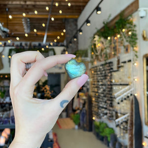Adorable little polished Labradorite heart. You will receive one similar to those shown.