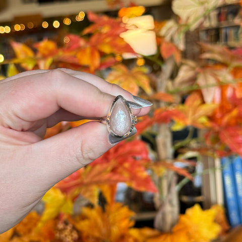 Genuine Pink Moonstone and Sterling Silver ring, size 6.