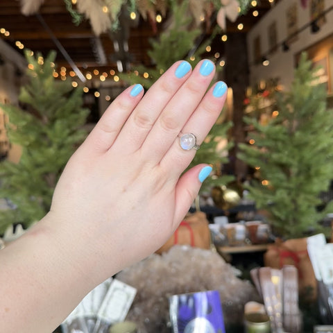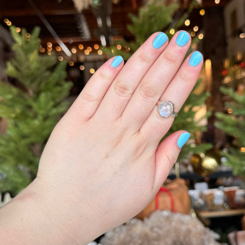 Genuine Rainbow Moonstone and Sterling Silver ring, size 9.