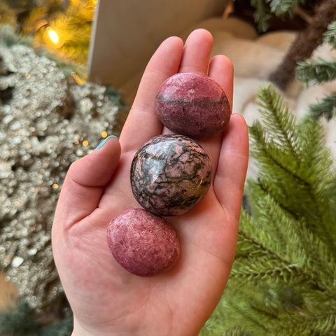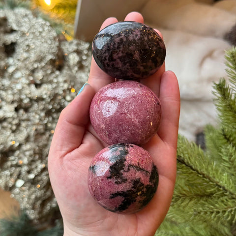 Rhodonite is believed to be the stone of compassion, understanding and emotional balance. Believed to give a nurturing energy to its holder, Rhodonite is said to heal old wounds and help us move on from the past. Rhodonite is also believed to alleviate stress and help with anxiety.