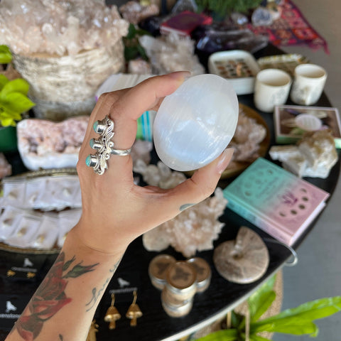 A stone of the moon, Selenite is known as an energy cleanser; a crystal that can be used to clear stagnant negative energy in a space and make room for fresh new beginnings. It’s also said to encourage introspection and feelings of connectedness with our intuition and higher consciousness.