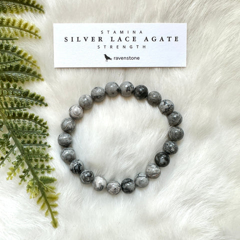 Silver Lace Agate, with its gorgeous intricate patterns, is often associated with stamina and strength. This stone is believed to help push you in the right direction of your path and encourage personal growth. The banding of Silver Lace Agate is a sign of free flow in nature and is said to aid in providing the fortitude and clarity needed to move toward positive energies.