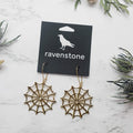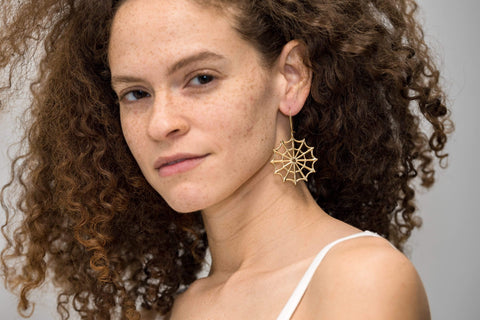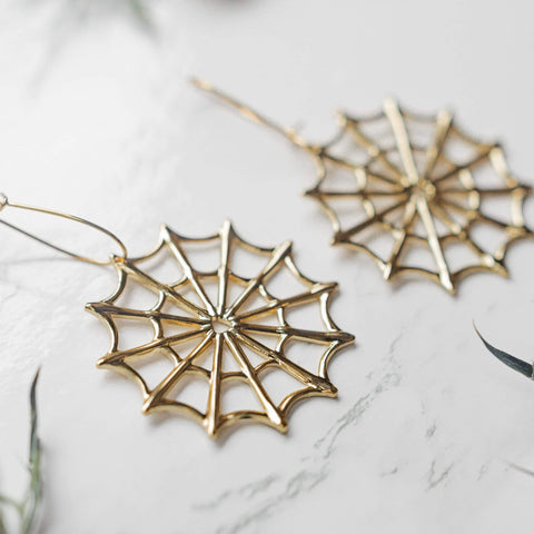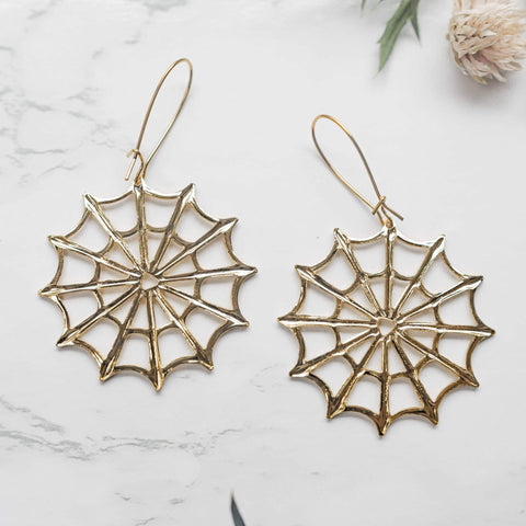 Large, lightweight (hollow backed) metal spiderweb earrings.
