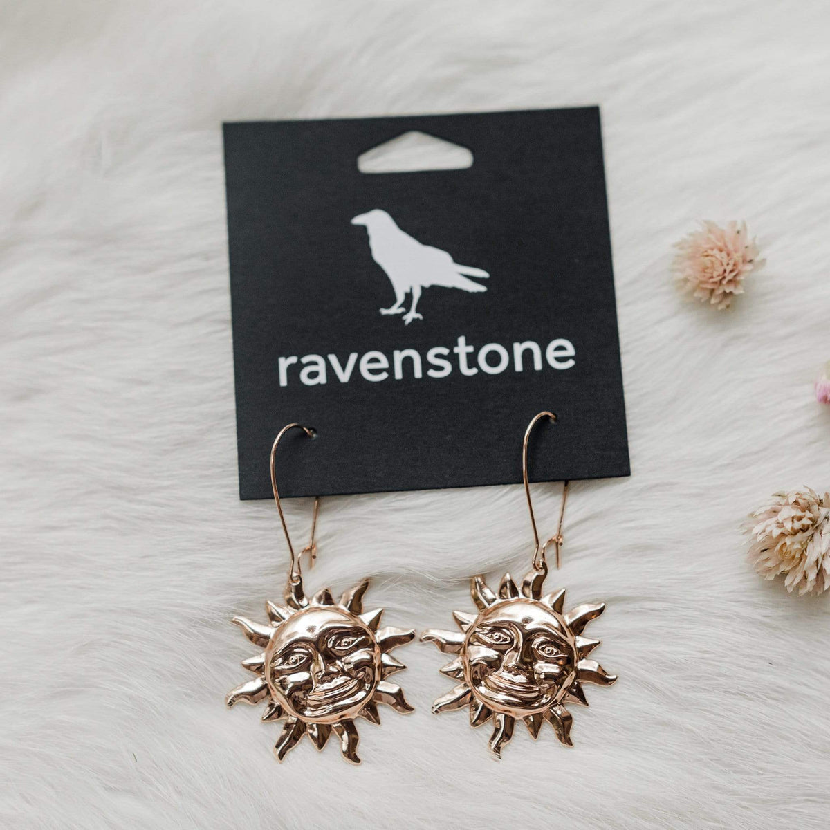 Lightweight (hollow backed) mismatched metal sun earrings.