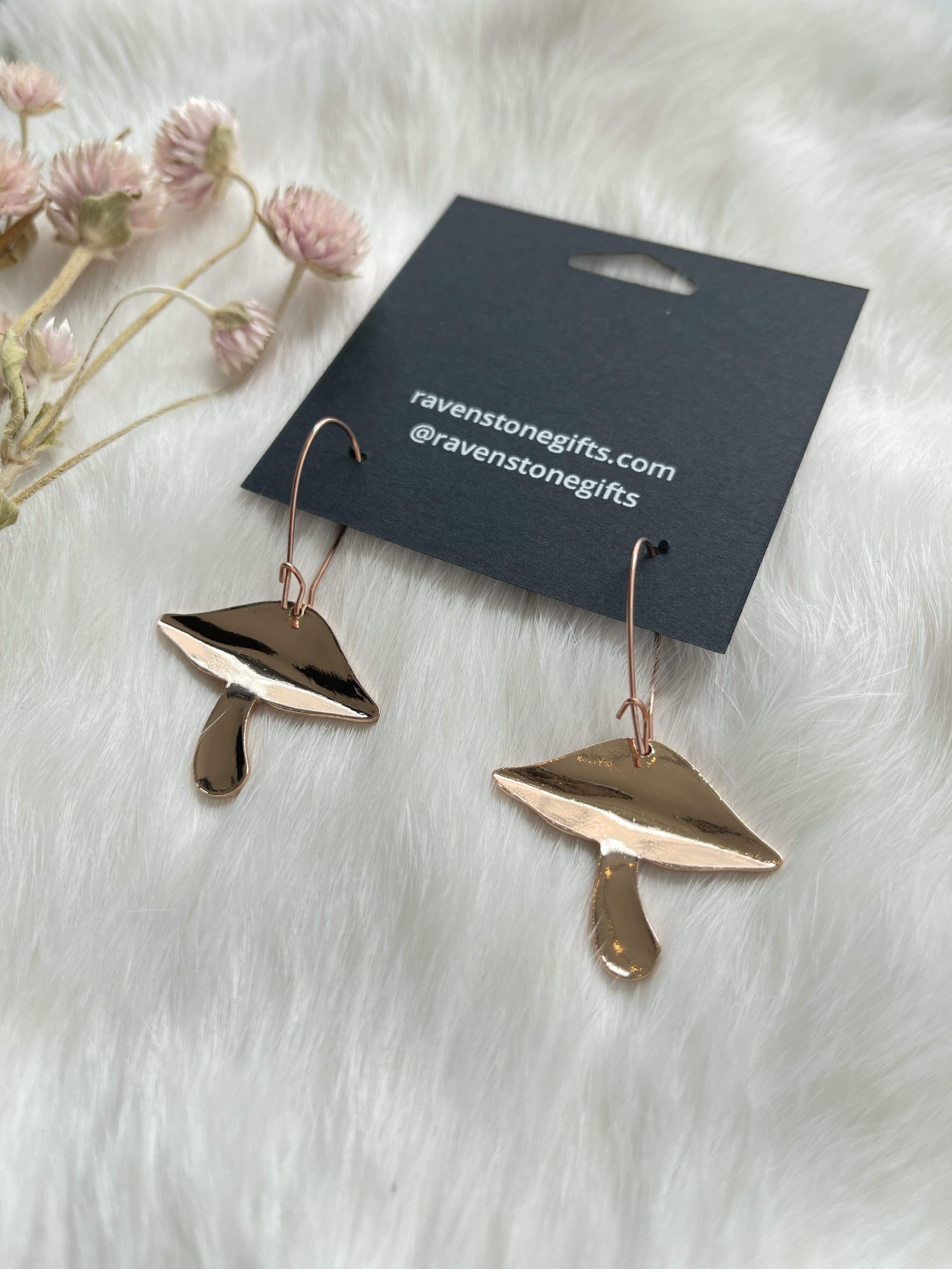 Recycled brass finished with genuine shiny rose gold and suspended on secure ear wires.