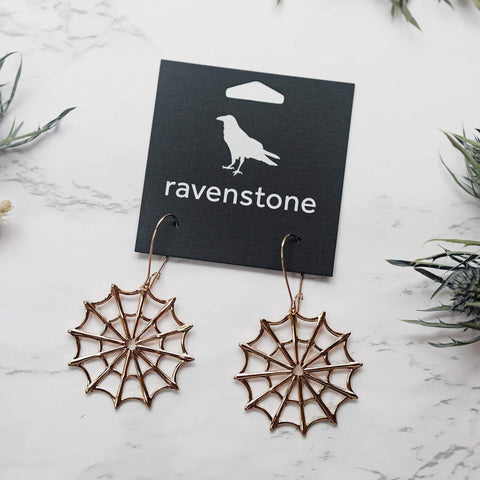 Large, lightweight (hollow backed) metal spiderweb earrings.